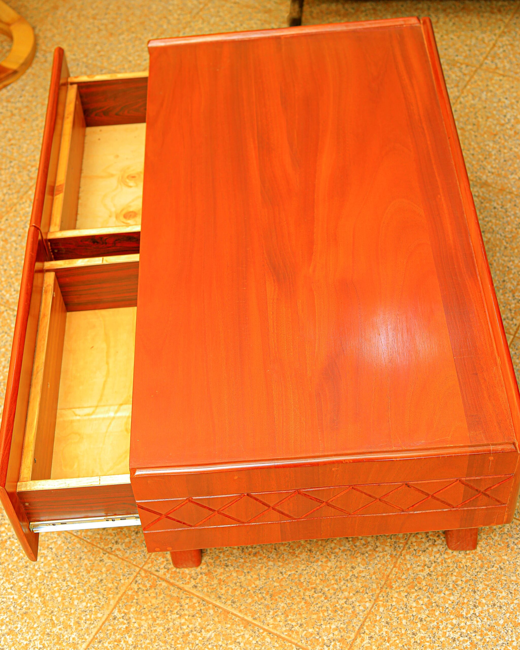 Celebrate natural beauty and strength with this handcrafted center table. A substantial, thick top highlights the hardwood’s swirling grain and golden-brown tones, while gracefully sculpted pedestal legs give the piece presence without bulk. The low, stable profile makes it perfect for conversation areas, floor seating, or modern lounge settings. Finished by hand for a smooth touch and everyday durability.